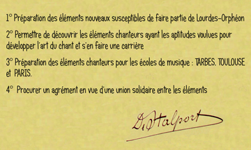 Favorablement Impressionné par la qualité des chanteurs qu’il entreprend de diriger à Lourdes, David Stalport, baryton, 1er prix du conservatoire de Bruxelles, propose au maire Lucien Gazagne d’instituer une véritable école du chanteur dont il définit ainsi les objectifs :